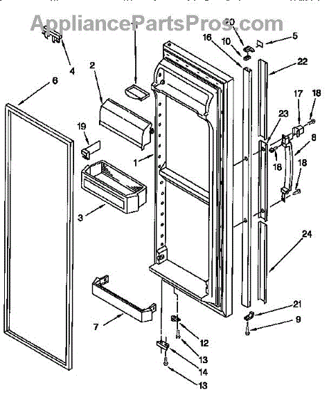 The Compartment Door is an OEM component for Whirlpool and Kenmore built-in refrigerator models. It provides access to organized storage in the fridge's fresh food compartment. The compartment door measures approximately 15” long by 6” wide.