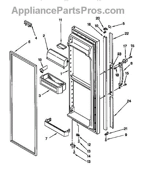 The Compartment Door is an OEM component for Whirlpool and Kenmore built-in refrigerator models. It provides access to organized storage in the fridge's fresh food compartment. The compartment door measures approximately 15” long by 6” wide.