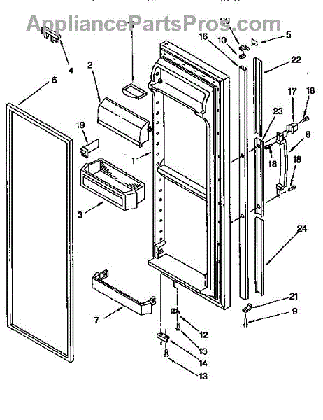 The Compartment Door is an OEM component for Whirlpool and Kenmore built-in refrigerator models. It provides access to organized storage in the fridge's fresh food compartment. The compartment door measures approximately 15” long by 6” wide.