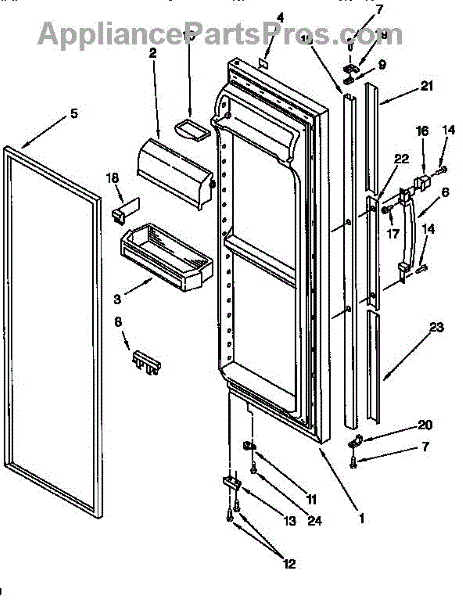 The Compartment Door is an OEM component for Whirlpool and Kenmore built-in refrigerator models. It provides access to organized storage in the fridge's fresh food compartment. The compartment door measures approximately 15” long by 6” wide.