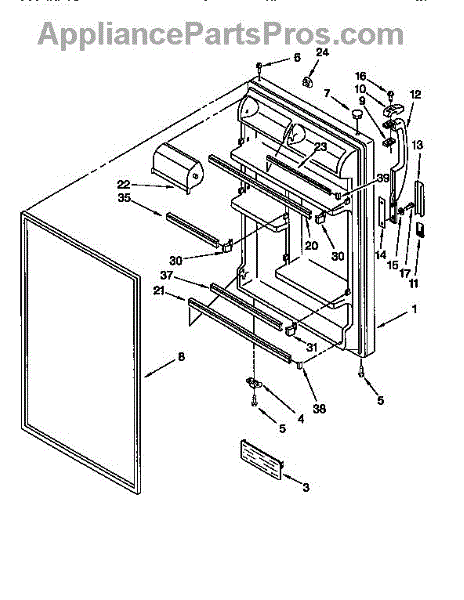 Refrigerator door assembly with gasket-white.