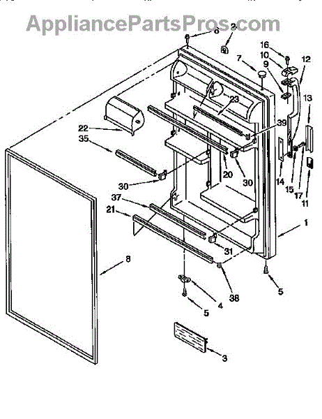 Refrigerator door assembly with gasket-white.