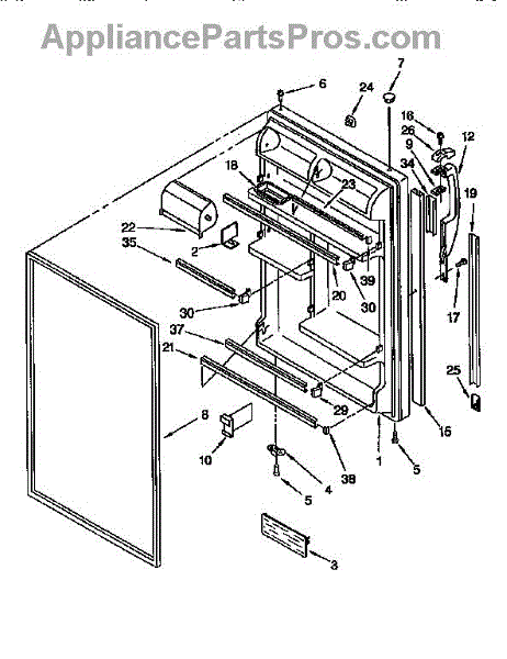 Refrigerator door assembly with gasket-white.