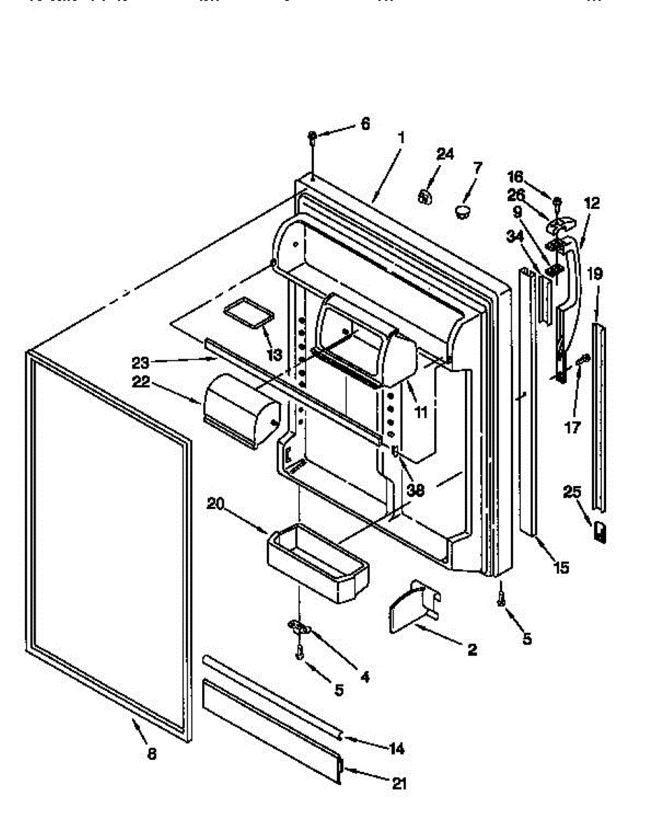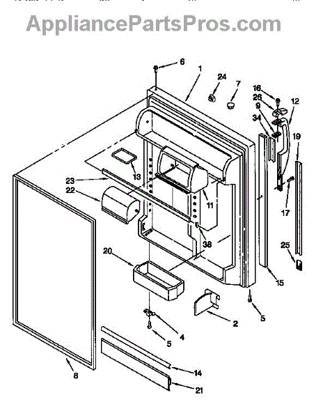 The Door Bin is an OEM replacement part for Whirlpool refrigerators. It is a removable plastic storage bin mounted inside the upper refrigerator door. This bin provides convenient access for eggs, condiments, and other small items with the door open.