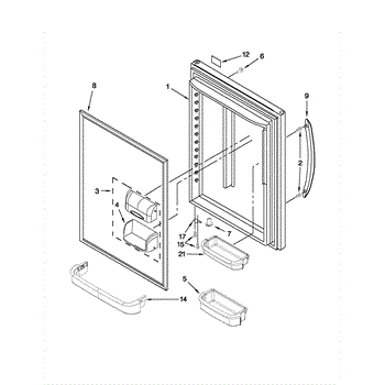 The Door Closure is an OEM replacement part for Whirlpool refrigerators. It is a small component that the door rides on that allows it to open and close properly. Causes of impaired operation involve age-related spring coil fatigue, dislodged or cracked plastic housing pieces, or confined door alignment stripping closure grooves. Symptoms of a faulty closure include: