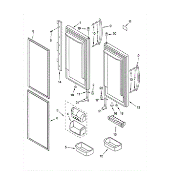 Parts for Kitchenaid KBFS25ETBL11: Refrigerator Door Parts