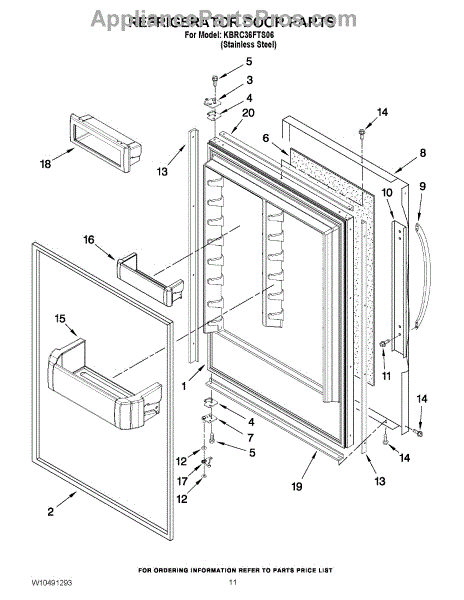 Parts for Kitchenaid KBRC36FTS06: 07 - Refrigerator Door Parts