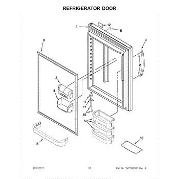 The Bin-Cntlvr (Cantilever Bin) is an OEM part for Whirlpool refrigerators. This bin attaches to the refrigerator door and provides additional storage space for items like bottles, condiments, and other small containers. The cantilever design allows for easy adjustment and customization of shelf space within the refrigerator door.