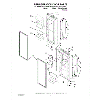 The Door Gasket is an OEM replacement part for Whirlpool side-by-side refrigerators. This black gasket provides a critical moisture and air seal around the refrigerator and freezer door openings. Causes of failure may involve cracking or degradation from mechanical stresses or chemical exposure over years of use. Temperature fluctuations can also damage sealing integrity. Symptoms of a defective door gasket include: