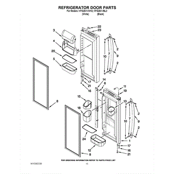 The Door Gasket is an OEM replacement part for Whirlpool side-by-side refrigerators. This black gasket provides a critical moisture and air seal around the refrigerator and freezer door openings. Causes of failure may involve cracking or degradation from mechanical stresses or chemical exposure over years of use. Temperature fluctuations can also damage sealing integrity. Symptoms of a defective door gasket include: