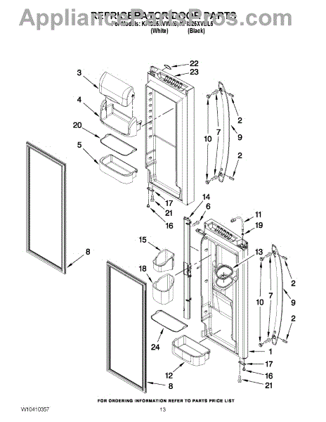 The Door Gasket is an OEM replacement part for Whirlpool side-by-side refrigerators. This black gasket provides a critical moisture and air seal around the refrigerator and freezer door openings. Causes of failure may involve cracking or degradation from mechanical stresses or chemical exposure over years of use. Temperature fluctuations can also damage sealing integrity. Symptoms of a defective door gasket include: