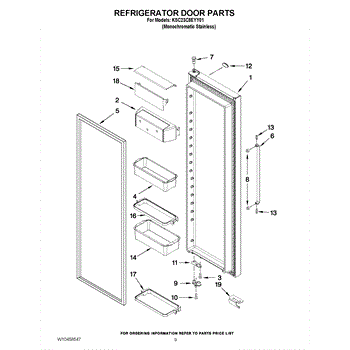 The Door Bin Frame is an OEM part for Whirlpool refrigerators. This part supports the removable door bins, which are used for storing smaller items like beverages, condiments, or dairy products.
