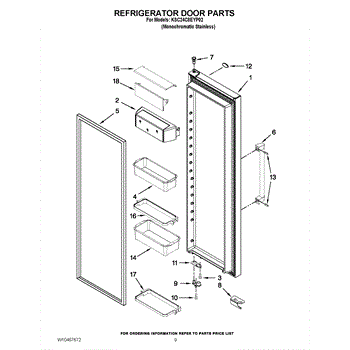 The Door Bin Frame is an OEM part for Whirlpool refrigerators. This part supports the removable door bins, which are used for storing smaller items like beverages, condiments, or dairy products.
