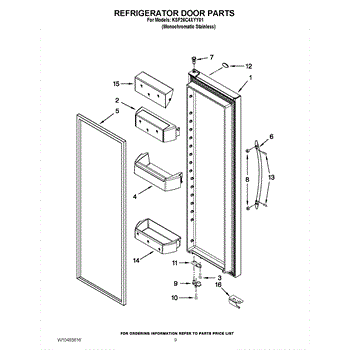 The Door bin is an OEM replacement part for Whirlpool refrigerators. It is a component located inside the refrigerator door that provides storage for small items like condiments, eggs, or milk cartons. The door bin is designed with convenient dividers and slots to securely organize a variety of items within easy reach on the refrigerator door.