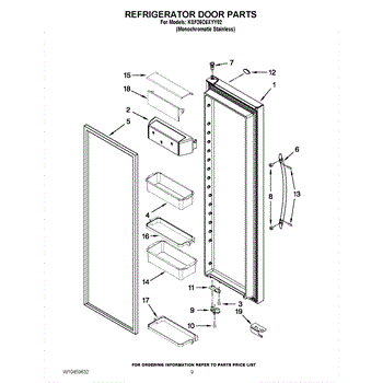 The Door Bin Frame is an OEM part for Whirlpool refrigerators. This part supports the removable door bins, which are used for storing smaller items like beverages, condiments, or dairy products.
