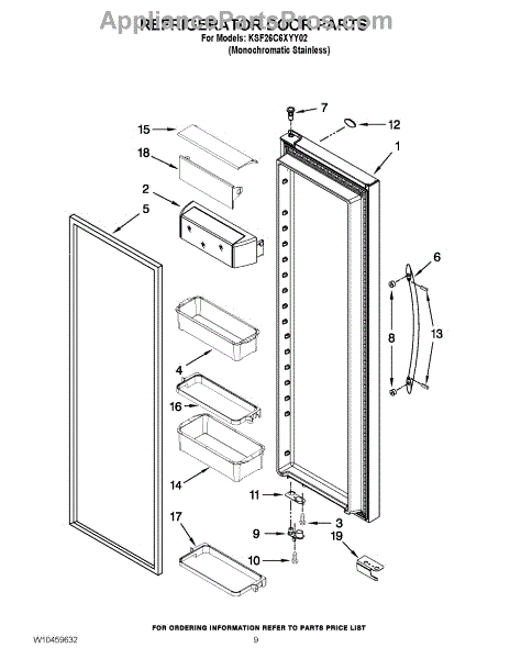 The Door Bin is an OEM replacement part for Whirlpool refrigerators. It provides handy storage space within the refrigerator door for smaller food items like condiments, eggs, and snacks. Measures about 14 inches wide by 4 inches high by 6 inches deep. Causes of a bad door bin can include cracks or breaks developing from repeated opening/closing of the door over time, or misalignments that prevent proper sliding and seating of the bin. Symptoms of a bad door bin include: