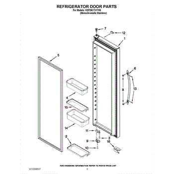 The Door Bin Frame is an OEM part for Whirlpool refrigerators. This part supports the removable door bins, which are used for storing smaller items like beverages, condiments, or dairy products.