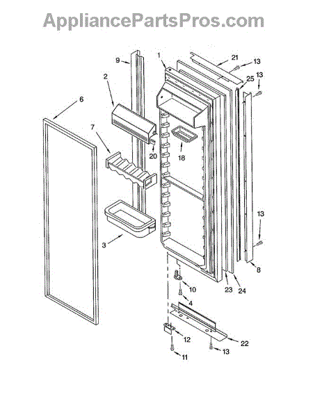 The Refrigerator Door Gasket (BLK) is an OEM part for Whirlpool refrigerators. This black gasket is designed to create a tight seal around the refrigerator door, preventing warm air from entering and cool air from escaping. The gasket is black in color and measures approximately 19 ¼” wide by 62" tall.