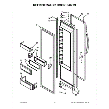 The Dairy Bin is an OEM replacement part for Whirlpool's built-in and integrated refrigerator side-by-side door shelves. It provides a designated space optimized for storing dairy products.