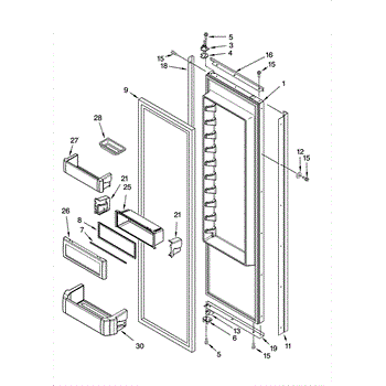 The Dairy Bin is an OEM replacement part for Whirlpool's built-in and integrated refrigerator side-by-side door shelves. It provides a designated space optimized for storing dairy products.