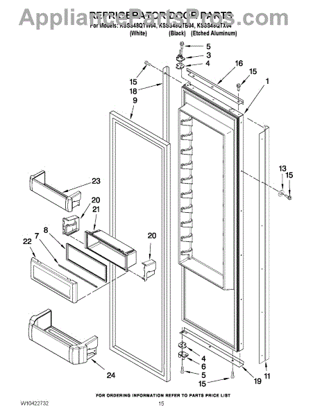 Parts for Kitchenaid KSSS48QTW04: 10 - Refrigerator Door Parts