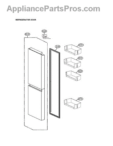 The door basket is an OEM replacement part for LG refrigerators. This part is designed to provide storage space on the lower portion of your refrigerator door, allowing you to neatly organize and store various items such as condiments, jars, and bottles. It offers a sturdy and reliable storage solution, ensuring that your items are securely held in place while still being easily accessible. A bad door shelf bin can occur due to wear and tear, cracks, or breakage. If you notice symptoms such as a loose or wobbly shelf bin, difficulty in keeping items in place, or missing or broken parts, it's time to replace the the worn-out or damaged lower door shelf bin with this genuine OEM part. Symptoms of a bad door shelf bin include: