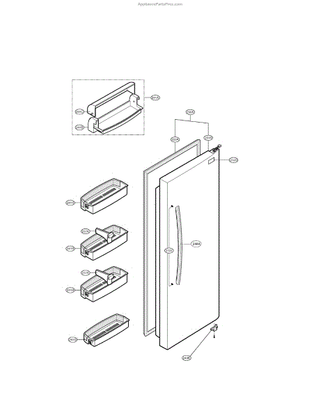 The Door Basket Assembly is an OEM part for LG refrigerators. This part provides additional storage space on the refrigerator door, allowing for the convenient organization and easy access to smaller items such as condiments, beverages, and dairy products.
