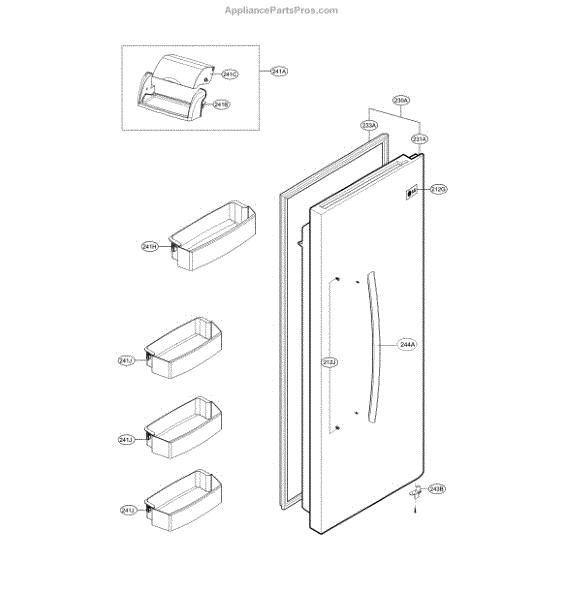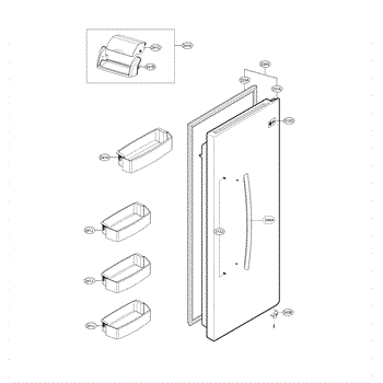 The Door Basket is an OEM part for LG refrigerators. This basket attaches to the interior of the refrigerator door, providing additional storage space for items such as bottles, jars, and other small containers, making it easy to organize and access frequently used items.