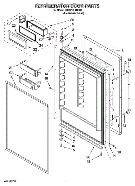 This shallow freezer door bin mounts on the inner door and restores organized storage for smaller items. Replace a cracked, loose, or missing bin to keep packages secure and easy to access.