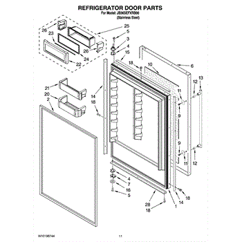 This control lever secures a refrigerator door shelf bin to the door frame so bins stay seated and stable during normal use. Replacing a broken or worn lever restores proper bin retention and reduces rattling or unexpected bin release. What it does