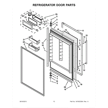 Right-hand door bin end cap that replaces a cracked or missing trim piece and secures the refrigerator door shelf. Restores a flush fit and helps keep stored items from shifting. What it does