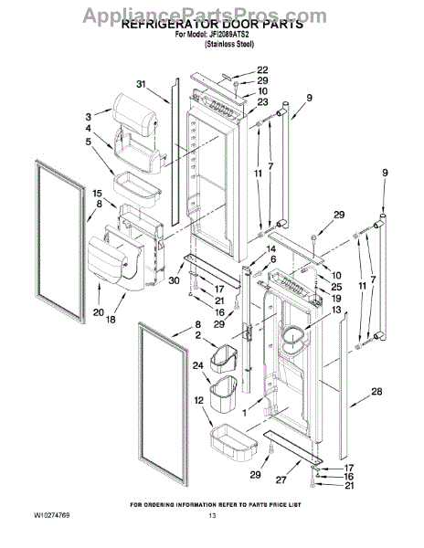The Door Gasket is an OEM replacement part for Whirlpool side-by-side refrigerators. This black gasket provides a critical moisture and air seal around the refrigerator and freezer door openings. Causes of failure may involve cracking or degradation from mechanical stresses or chemical exposure over years of use. Temperature fluctuations can also damage sealing integrity. Symptoms of a defective door gasket include: