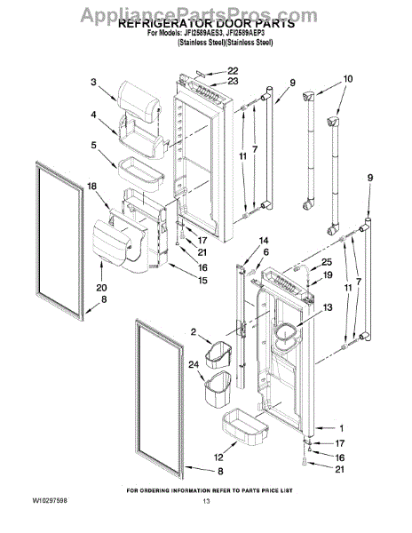 The Door Gasket is an OEM replacement part for Whirlpool side-by-side refrigerators. This black gasket provides a critical moisture and air seal around the refrigerator and freezer door openings. Causes of failure may involve cracking or degradation from mechanical stresses or chemical exposure over years of use. Temperature fluctuations can also damage sealing integrity. Symptoms of a defective door gasket include: