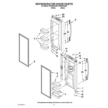 The Door Gasket is an OEM replacement part for Whirlpool side-by-side refrigerators. This black gasket provides a critical moisture and air seal around the refrigerator and freezer door openings. Causes of failure may involve cracking or degradation from mechanical stresses or chemical exposure over years of use. Temperature fluctuations can also damage sealing integrity. Symptoms of a defective door gasket include: