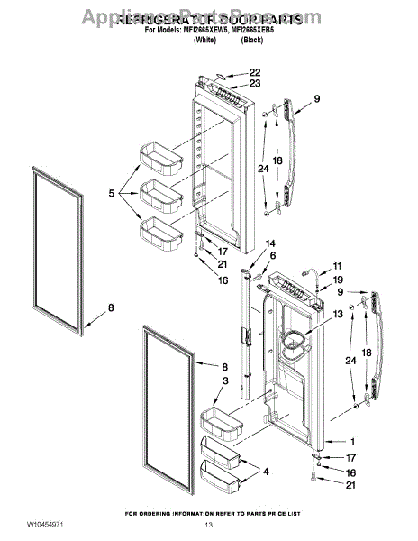 Causes of a bad Mullion Rail can include wear and tear from frequent use, mechanical damage from forceful handling of the refrigerator door, or degradation of the rubber seals that can compromise its effectiveness.