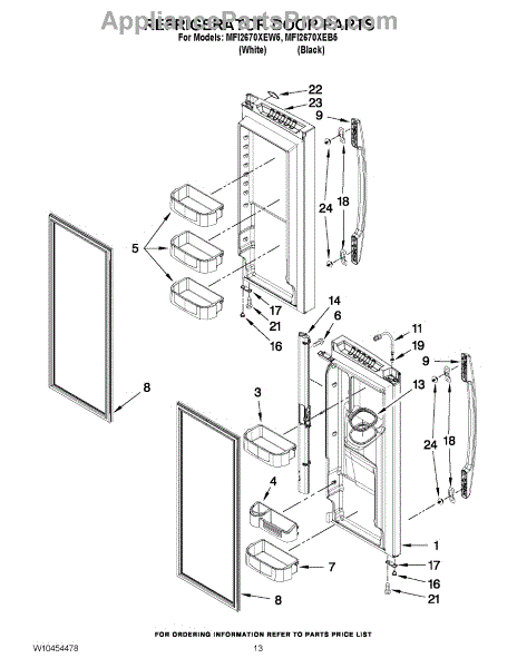 The Door Gasket is an OEM replacement part for Whirlpool side-by-side refrigerators. This black gasket provides a critical moisture and air seal around the refrigerator and freezer door openings. Causes of failure may involve cracking or degradation from mechanical stresses or chemical exposure over years of use. Temperature fluctuations can also damage sealing integrity. Symptoms of a defective door gasket include: