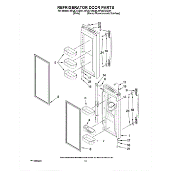 The Door Gasket is an OEM replacement part for Whirlpool side-by-side refrigerators. This black gasket provides a critical moisture and air seal around the refrigerator and freezer door openings.