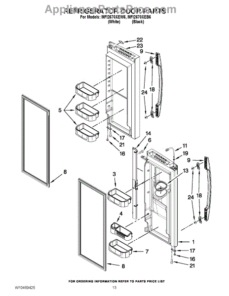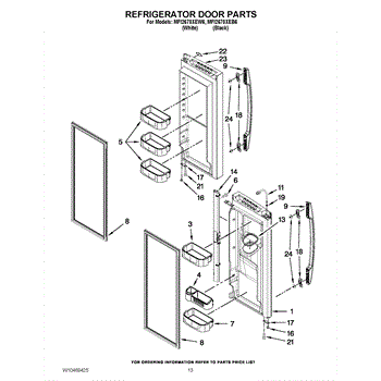 The Door Gasket is an OEM replacement part for Whirlpool side-by-side refrigerators. This black gasket provides a critical moisture and air seal around the refrigerator and freezer door openings. Causes of failure may involve cracking or degradation from mechanical stresses or chemical exposure over years of use. Temperature fluctuations can also damage sealing integrity. Symptoms of a defective door gasket include: