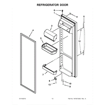 The Compartment Door is an OEM component for Whirlpool and Kenmore built-in refrigerator models. It provides access to organized storage in the fridge's fresh food compartment. The compartment door measures approximately 15” long by 6” wide.