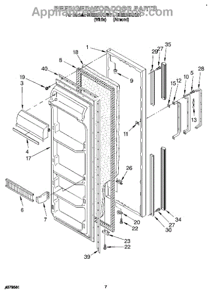 Parts for Roper RS22BRXBW01: 06 - Refrigerator Door Parts