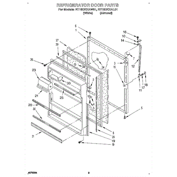 Parts for Roper RT18DKXAL01: 07 - Refrigerator Door, Lit / Optional Parts