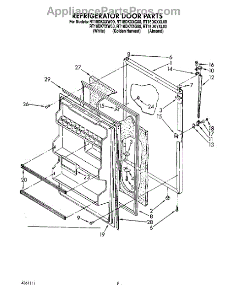 Parts for Roper RT18DKYXW00: 07 - Refrigerator Door, Lit / Optional Parts