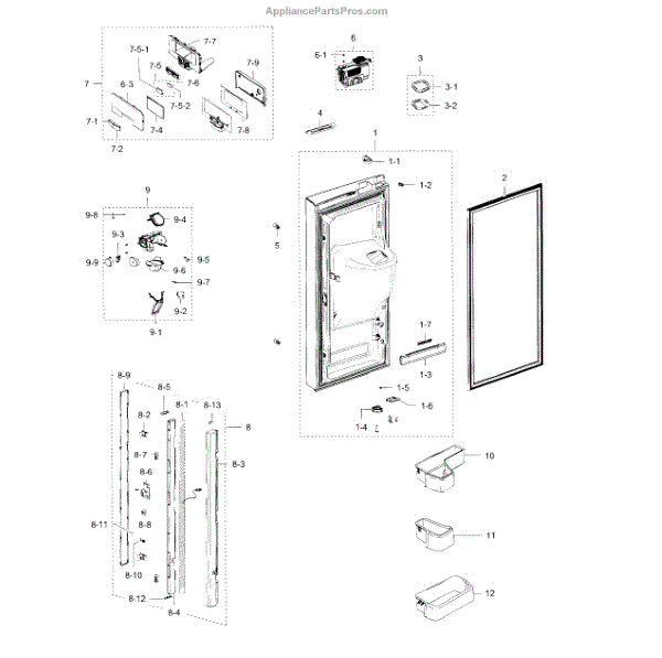Replaces the center door housing on French door refrigerators. Needed when the top guide knob breaks off, housing cracks, or hinge section wears out.
