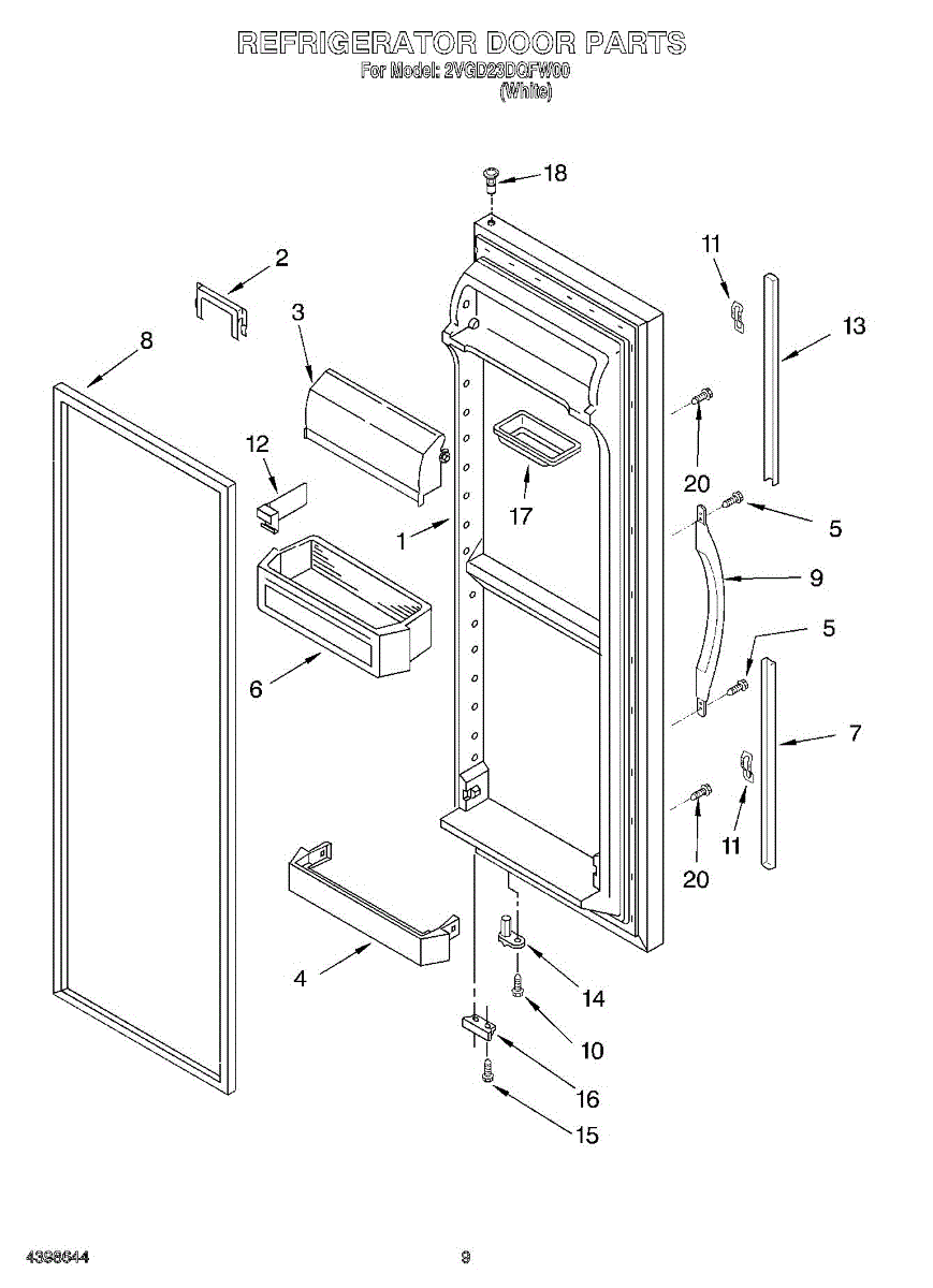 The Door Shelf is an OEM part for Whirlpool refrigerators. It provides additional storage space within the refrigerator door, allowing for the organization of smaller items like condiments, jars, and bottles.