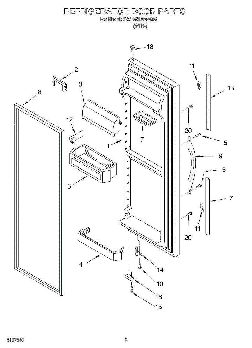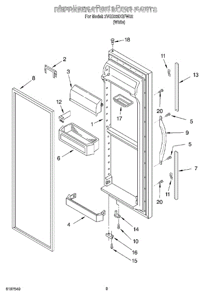 Door assembly, incluces inner and outer door panels along with door gasket.
