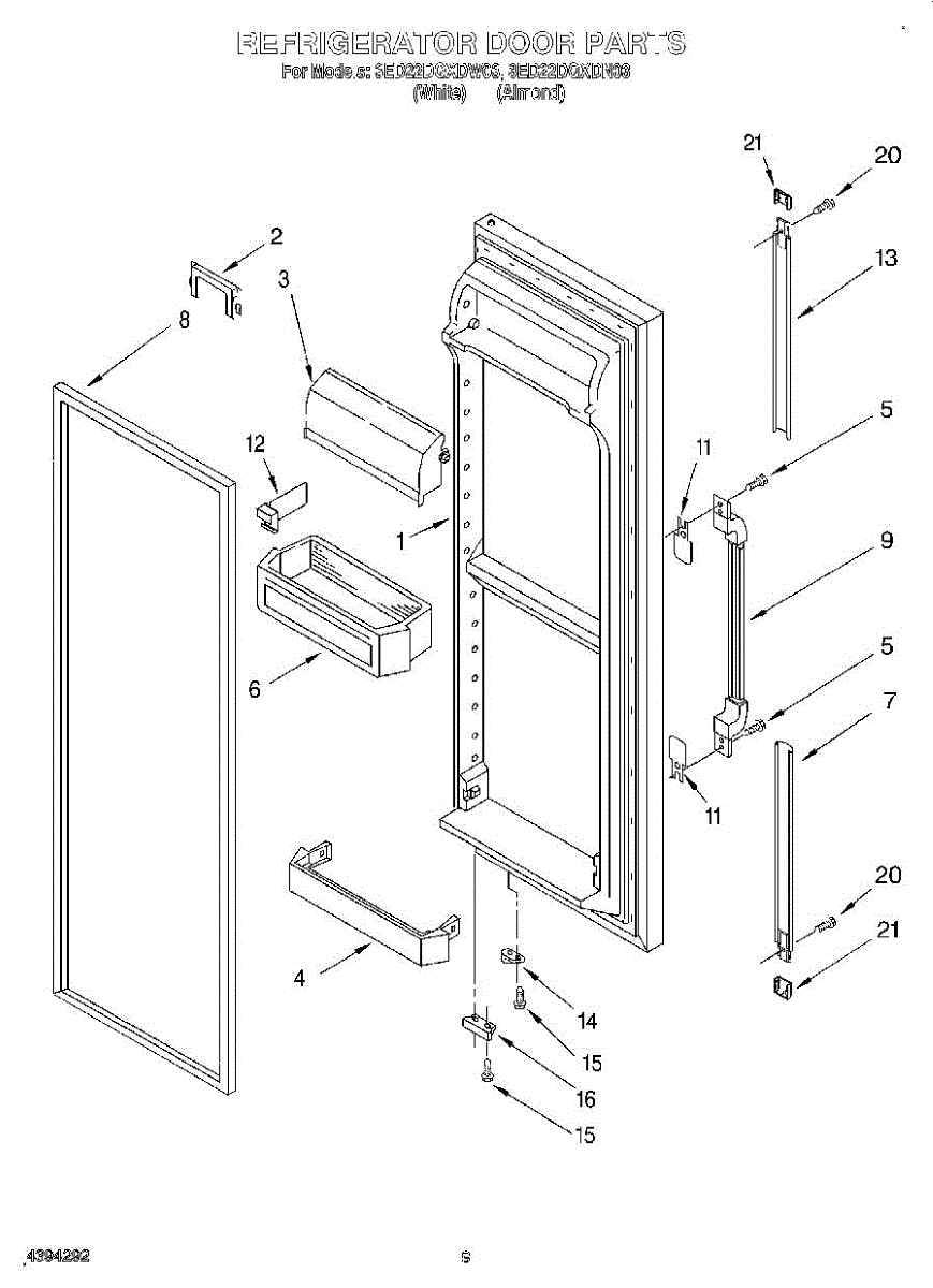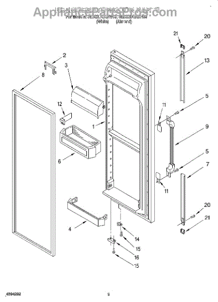 The Door Shelf is an OEM part for Whirlpool refrigerators. It provides additional storage space within the refrigerator door, allowing for the organization of smaller items like condiments, jars, and bottles.