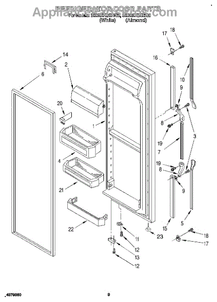Parts for Whirlpool 3ED25DQXBW00: 06 - Refrigerator Door Parts