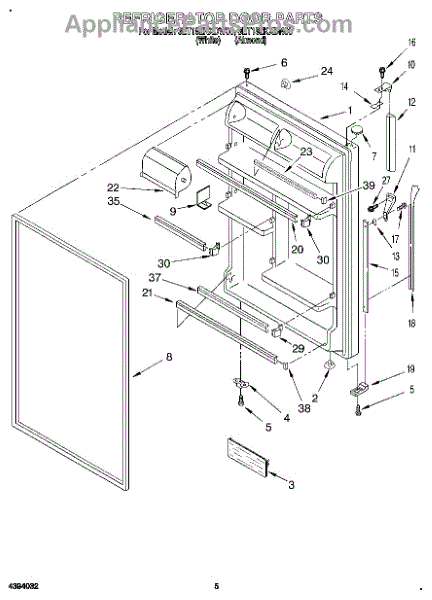 Parts for Whirlpool 3ET18ZKXDN00: 04 - Refrigerator Door Parts
