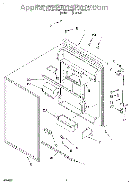 The Door Bin is an OEM replacement part for Whirlpool refrigerators. It is a removable plastic storage bin mounted inside the upper refrigerator door. This bin provides convenient access for eggs, condiments, and other small items with the door open.