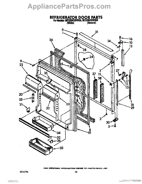 Parts for Whirlpool 3ET22DKXWW00: 08 - Refrigerator Door Parts